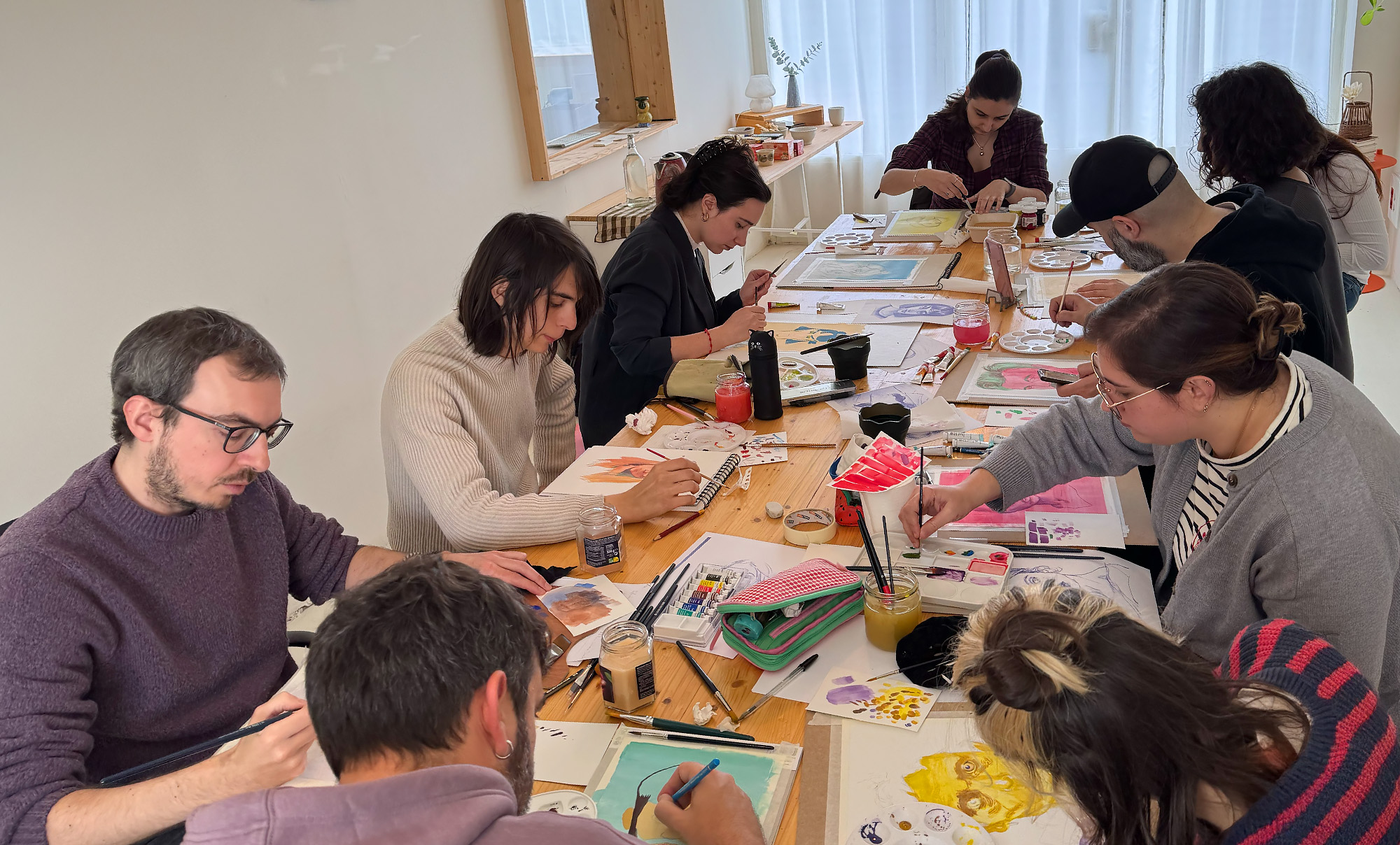 Este es un taller eminentemente práctico. Arrancamos con una parte teórica y una breve demostración y enseguida nos ponemos manos a la obra. El taller está dirigido paso a paso con el fin de acabar por completo la pieza. No obstante, tendrás tiempo para experimentar, equivocarte (porque de eso se aprende) y recibir feedback personalizado para mejorar tu técnica. Al final del taller, te llevarás a casa no solo tu propia obra de arte original en gouache, sino también nuevas habilidades y una mirada más atenta a la belleza y singularidad de los rostros. ¡Anímate a soltar la mano, jugar con el color y descubrir el talento que llevas dentro!